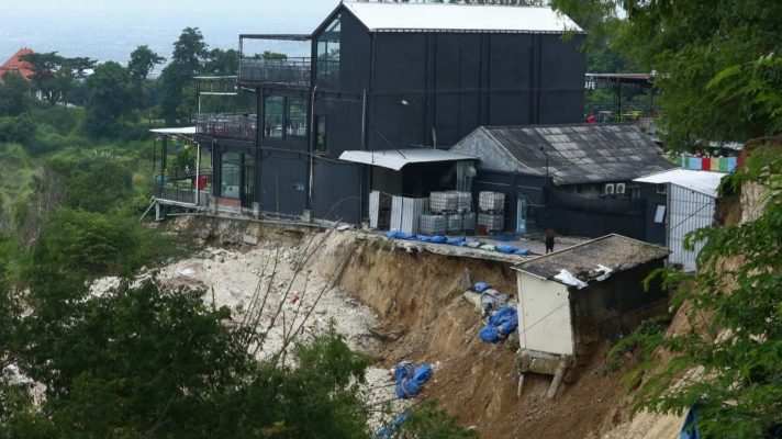 LONGSOR : Bangunan kafe di kawasan Putri Cempo mulai longsor (foto : chusnul cahyadi/1minute.id)