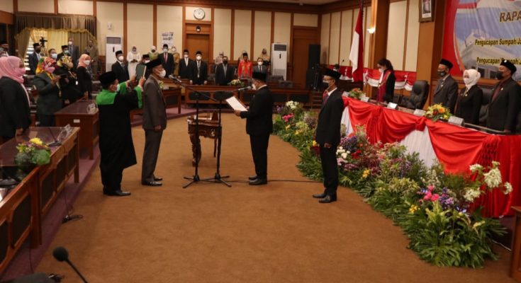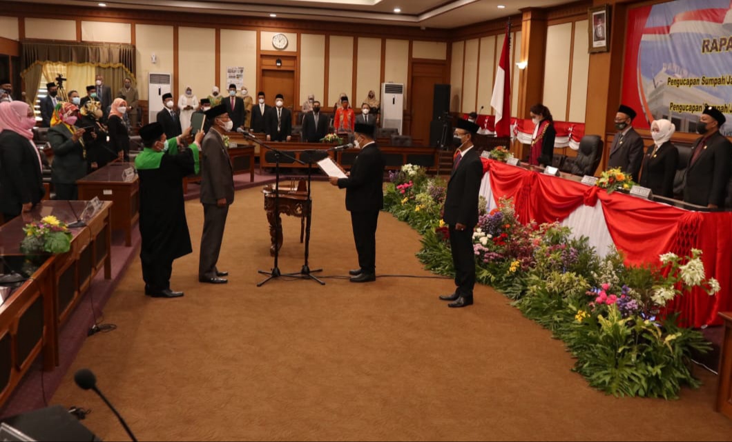 Pengucapan sumpah/Janji dengan dipandu oleh Ketua DPRD Gresik Abdul Qodir.