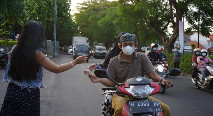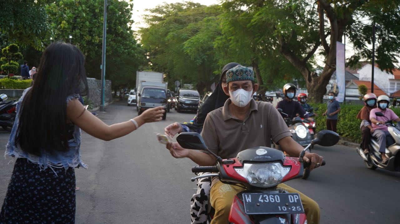 Mereka membagikan tumbler, sedotan stainless dan masker kain kepada para pengendara di Jalan Sumatera Kompleks Perumahan Gresik Kota Baru (GKB), Desa Randuagung, Kecamatan Kebomas, Gresik.