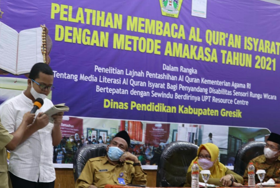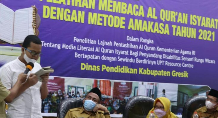 GRESIK, 1minute.id –  Ngaji Isyarat metode Amakasa 2021 mulai dikembangkan UPT Reseurce Centre Dinas Pendidikan (Dispendik) Gresik. Ngaji Alquran bagi penyandang disabilitas tuna rungu ini kali pertama di Jatim.