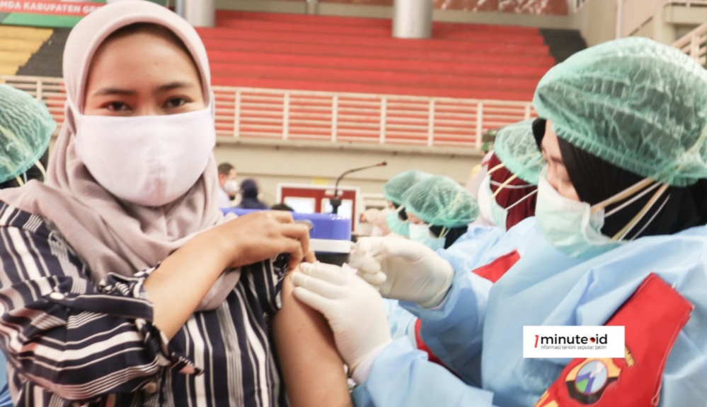 GRESIK ,1minute.id – Lonjakan kasua Covid-19 membuat Pemerintah Provinsi (Pemprov) Jatim melakukan percepatan vaksinasi. Gubernur Jatim Khofifah Indar Parawansa menargetkan 300 ribu vaksinasi saban hari di Jatim.