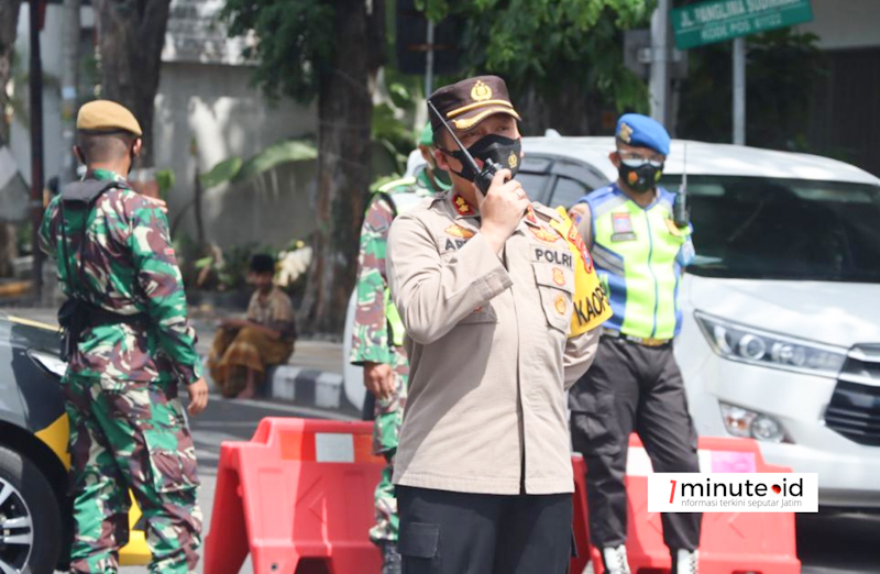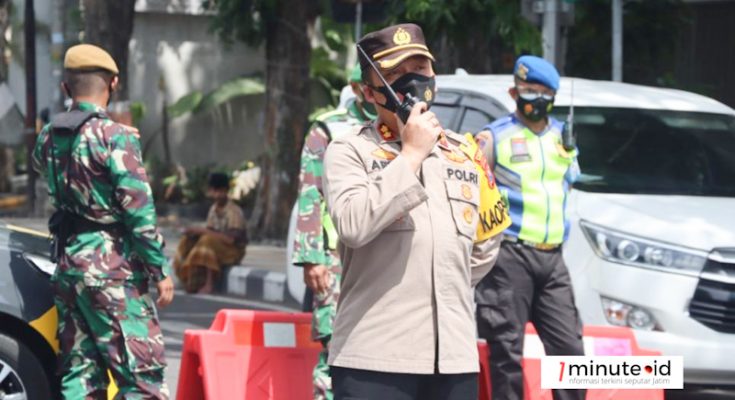 Kapolres Gresik AKBP Arief Fitrianto turun langsung ke lapangan melakukan pengecekan dan memastikan pembatasan mobilitas masyarakat dilaksanakan dengan ketat pada Jumat, 9 Juli 2021.