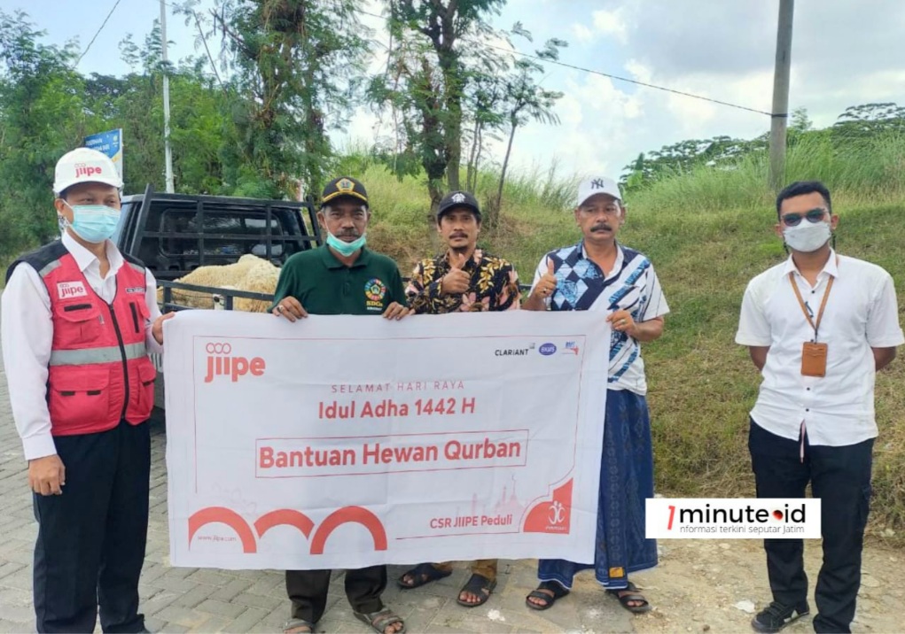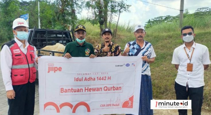 GRESIK,1minute.id – Menyambut Hari Raya Idul Adha 1442 Hijriah, Kawasan Industri JIIPE menyerahkan bantuan hewan kurban 3 ekor sapi dan 18 ekor kambing kepada masyarakat sekitar pada Selasa, 20 Juli 2021.