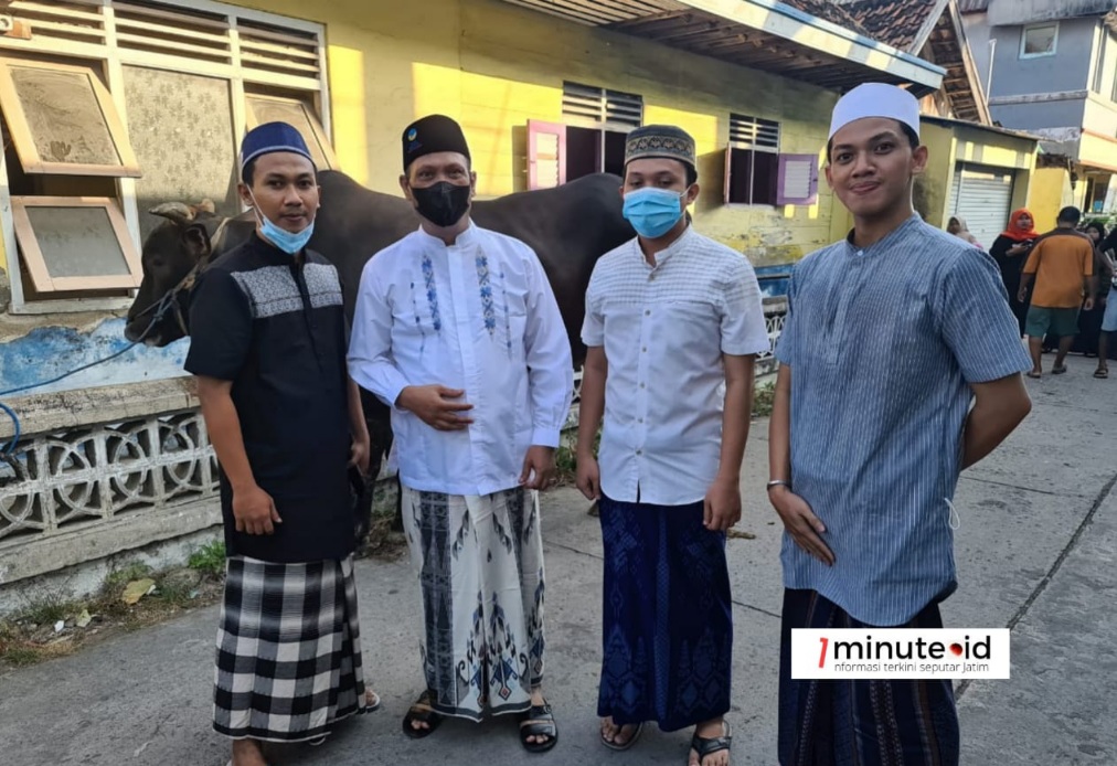 GRESIK,1minute.id – Anggota Fraksi Partai Nasional Demokrat (NasDem) DPRD Gresik Mahmud menyerahkan dua ekor sapi kepada dua takmir masjid di Desa Banyuwangi, Kecamatan Manyar, Gresik pada Selasa, 20 Juli 2021.