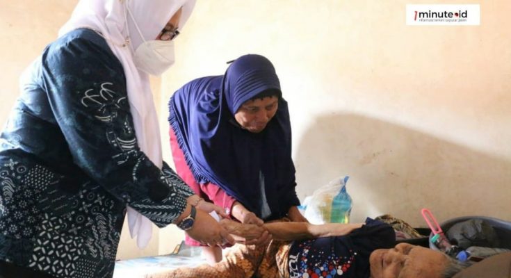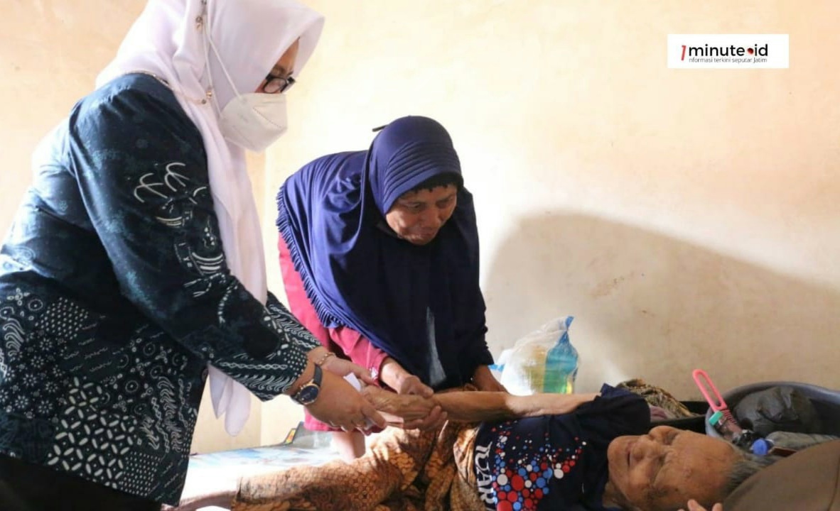 GRESIK,1minute.id – Wakil Bupati Gresik Aminatun Habibah mendatangi rumah nenek Sri, 84 tahun. Ia warga Desa Sirnoboyo, Kecamatan Benjeng. Usia lanjut membuat nenek Sri mengalami gangguan penglihatan dan pikun. Nenek Sri hanya bisa berbaring di tempat tidur dirumah yang sederhana.