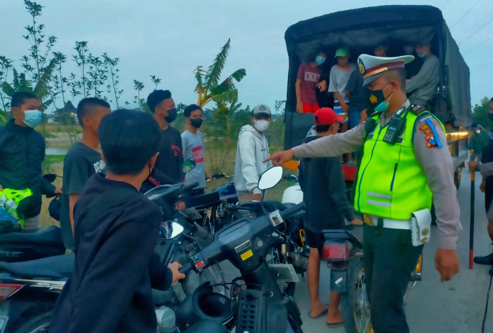Penggerebekan yang dipimpin oleh Kasatlantas AKP Engkos Sarkosi ; Kasat Samapta AKP Hery Moeriyanto Tampake ; Kanit Turjawali Satlantas Iptu Darwoyo dan Danru I Dalmas Samapta Aiptu Didik Suswanto mengamankan puluhan anak muda.