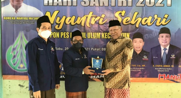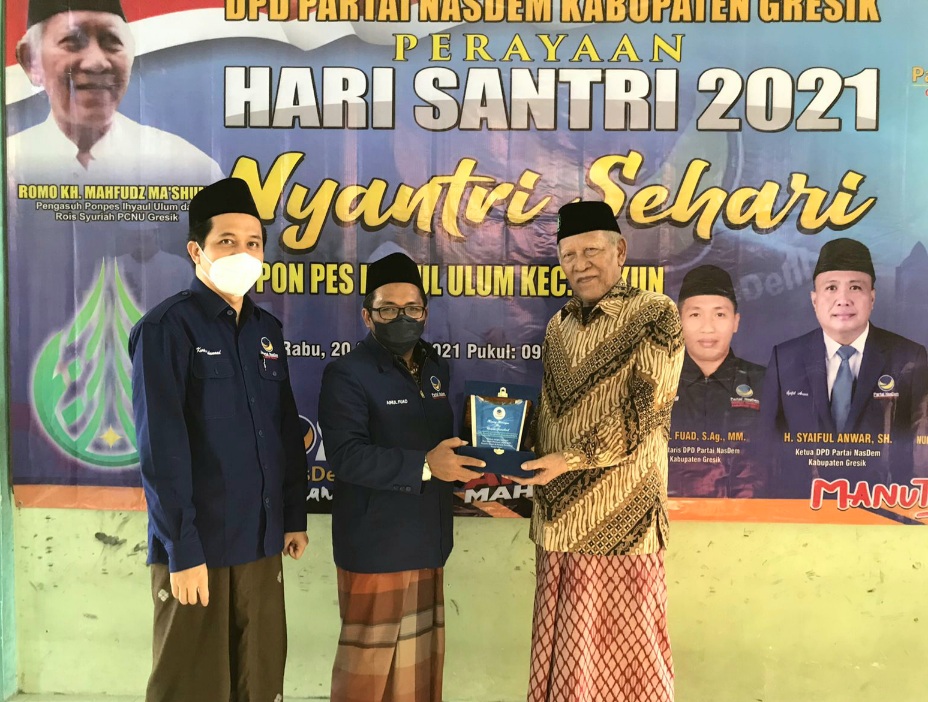 Program nyantri sehari DPD Partai NasDem Gresik ini bagian dari rangkaian memperingati Hari Santri Nasional 2021, selain nyantri sehari, partai NasDem Gresik juga menggelar santripreneur se-Jawa Timur, ngaji kebangsaan bersama KH. Ahmad Muwaffiq, dan pembacaan salawat nariyah 4.444 kali, dan ditutup dengan tasyakuran puncak Hari Santri Nasional di Kantor DPD Partai NasDem Gresik. (yad)