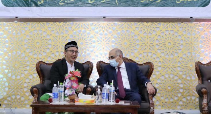 GRESIK,1minute.id – Duta Besar Mesir untuk Indonesia Ashraf Mohammaed Mughoib Sultan mengunjungi Ponpes Mamba’us Sholihin di Desa Suci, Kecamatan Manyar, Gresik pada Kamis,18 November 2021. Dubes Ashraf disambut lantunan salawat Nabi oleh Santri dan para kiai.