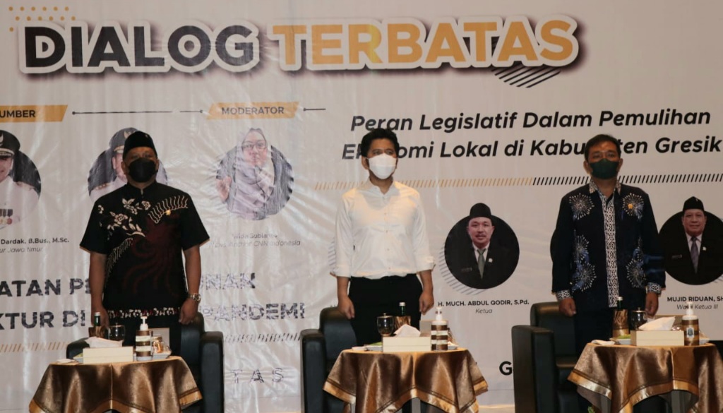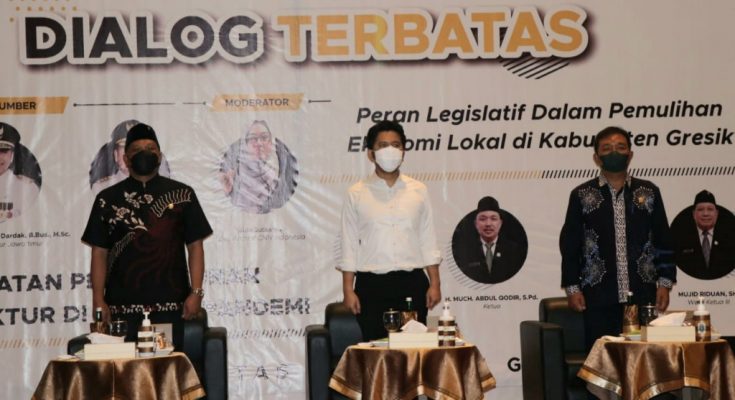 Hal itu terungkap dalam Dialog Terbatas berjudul “Percepatan Pembangunan di Tengah Pandemi” yang digelar Komunitas Wartawan Gresik (KWG) bersama DPRD Gresik pada Sabtu, 20 November 2021. Dialog dihelat di hotel Asto Inn di Kompleks Perumahan Gresik Kota Baru (GKB) itu digelar secara virtual dan hybrid.