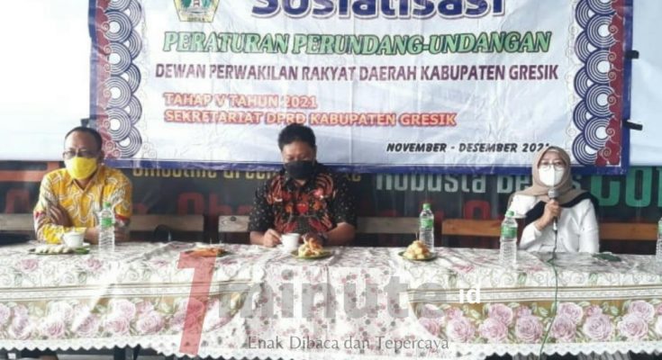 GRESIK,1minute.id – Tiga pucuk pimpinan DPRD Gresik melakukan Sosialisasi Perundangan (Sosper) 2021 di Desa Metatu, Kecamatan Benjeng pada Minggu, 5 Desember 2021. Mereka adalah Ahmad Nurhamim, Mujid Riduan dan Nur Saidah. Sosialisasi tahap V yang dilakukan oleh tiga orang Wakil Ketua DPRD Gresik itu berlangsung ganyeng.