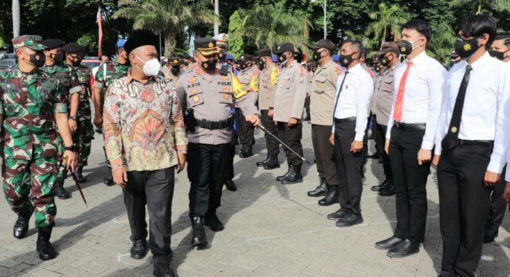 GRESIK,1minute.id – Apel gelar pasukan pengamanan Natal 2021 dan Tahun Baru 2022 (Nataru) digelar Polres Gresik di halaman Kantor Bupati Gresik pada Kamis, 23 Desember 2021. Apel gelar pasukan bersandi Operasi Lilin Semeru 2021 ini dipimpin oleh Bupati Gresik Fandi Akhmad Yani.