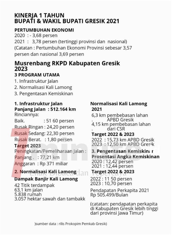 Musrenbang RKPD Gresik 2023 ini mengarusutamaan Nawakarsa, meningkatkan pertumbuhan ekonomi pascapandemi Covid-19. Pada 2020, pertumbuhan ekonomi minus 3, 68 persen. Pada 2021 pertumbuhan ekonomi meningkatkan menjadi 3,79 persen atau meningkatkan 7,47 persen.
