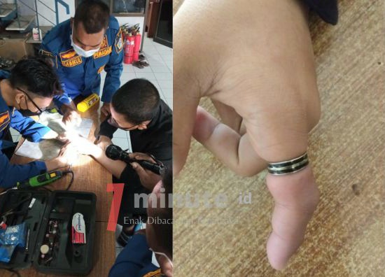 “Ia disarankan ke kantor Damkar meminta bantuan memotong cincin Ahmad itu,”terangnya pada Jumat, 6 Mei 2022. Selama 15 menit, petugas rescue di Dinas Damkar akhirnya bisa melepaskan cincin di jari telunjuk kiri Ahmad. Ahmad tidak lagi meringis kesakitan. Syafruddin pun tersenyum. “Rescue cincin ini kali pertama kami lakukan,”tegas mantan Kepala Dinas Pemuda dan Olahraga (Dispora) Gresik itu. (yad)