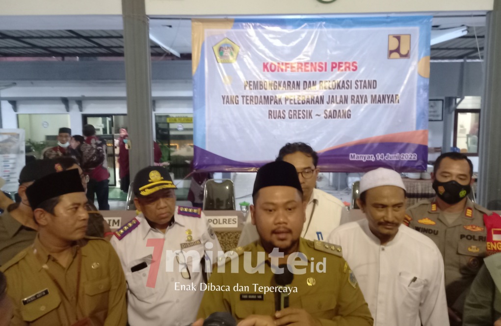 Tempat relokasi berada di lapangan yang dekat dari jalan raya nasional. Bupati berusia 36 tahun itu, meminta kepada para pedagang yang bakal terkena imbas pelebaran jalan nasional itu mendaftarkan ke kantor kecamatan Manyar. Dalam sosialisasi itu, mayoritas pedagang yang selama ini berjualan di ruang milik jalan (rumija) sepakat untuk relokasi.