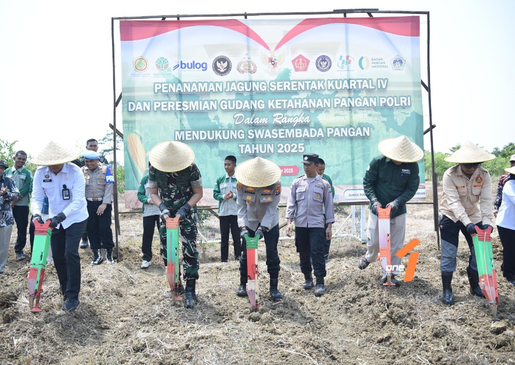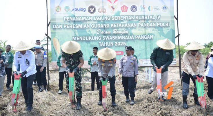 GRESIK,1minute.id – Polres Gresik dan Polsek jajaran melaksanakan Penanaman Jagung Serentak Kuartal IV sekaligus Peresmian Gudang Ketahanan Pangan Polri di Desa Surowiti, Kecamatan Panceng, Kabupaten Gresik, Jawa Timur pada Rabu, 8 Oktober 2025.