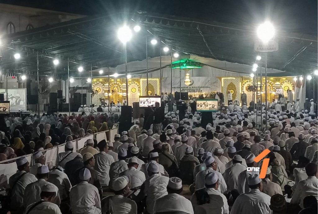 GRESIK,1minute.id – Ribuan jemaah menghadiri Tabligh Akbar dan Maulidurrosul Muhammad SAW di Kompleks Perumahan Alam Bukit Raya, Desa Kembangan, Kecamatan Kebomas Kabupaten Gresik, Jawa Timur pada Sabtu malam, 18 Oktober 2025.