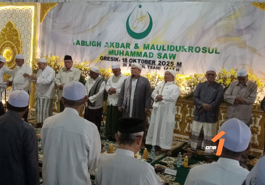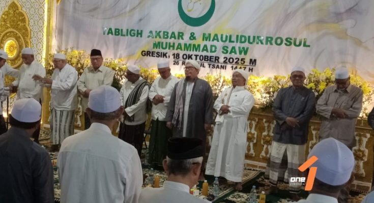 GRESIK,1minute.id – Ribuan jemaah menghadiri Tabligh Akbar dan Maulidurrosul Muhammad SAW di Kompleks Perumahan Alam Bukit Raya, Desa Kembangan, Kecamatan Kebomas Kabupaten Gresik, Jawa Timur pada Sabtu malam, 18 Oktober 2025.