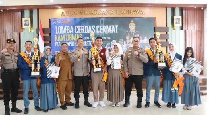 GRESIK,1minute.id – Polres Gresik menggelar Cerdas Cermat Kamtibmas jenjang SMA/SMK sederajat memperebutkan Piala Kapolres Gresik. Tim SMA Semen Gresik berhak memboyong trofi Piala Kapolres Gresik AKBP Rovan Richard Mahenu.