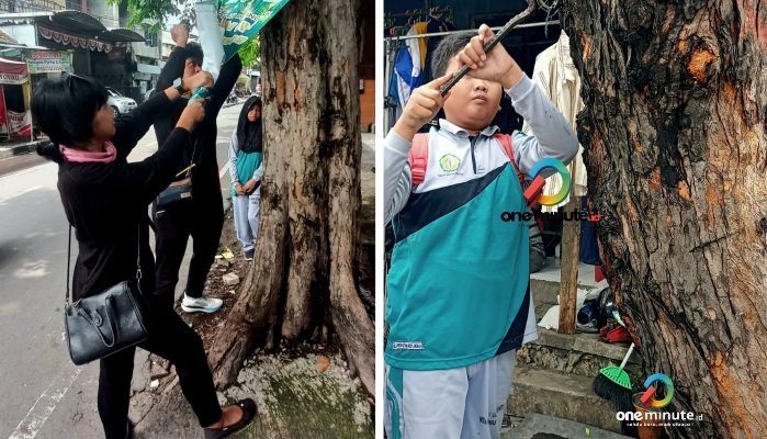 GRESIK,1minute.id – Puluhan siswa Madrasah Tsanawiyah (MTs) Ma’arif Sidomukti bersama komunitas Earth & Human (EH) Gresik melakukan aksi razia paku yang menancap pada batang pohon di sepanjang Jalan Sunan Giri pada Ahad, 23 November 2025.