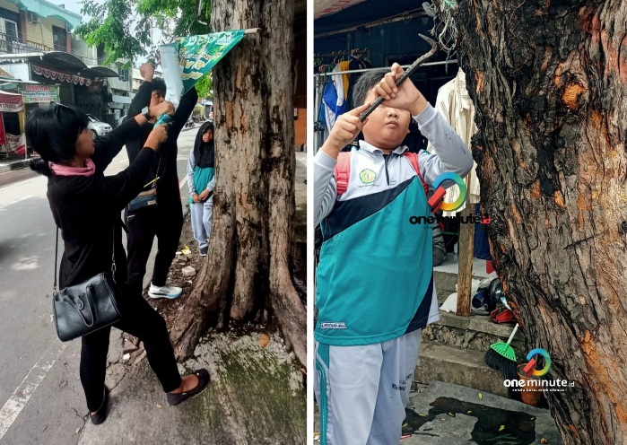 Sejak pagi puluhan relawan yang mayoritas kaum hawa itu berkeliling menyusuri jalur Jalan Sunan Giri, Kecamatan Kebomas, Kabupaten Gresik tersebut. Mereka sambil membawa tang, sarung tangan, dan kantong sampah. Mereka mencabut satu per satu paku, staples, dan benda-benda logam lain yang tertancap di batang pohon.