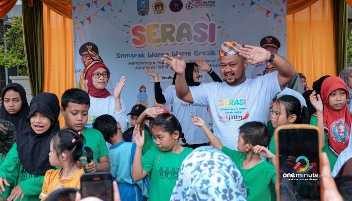 GRESIK,1minute.id – Ratusan anak disabilitas riang. Mereka bahagia mengikuti kegiatan Serasi : Semarak Warna-Warni Gresik Inklusi. Kegiatan untuk memperingati Hari Disabilitas Internasional 2025 dihelat di halaman Kantor Bupati Gresik pada Selasa, 9 Desember 2025.