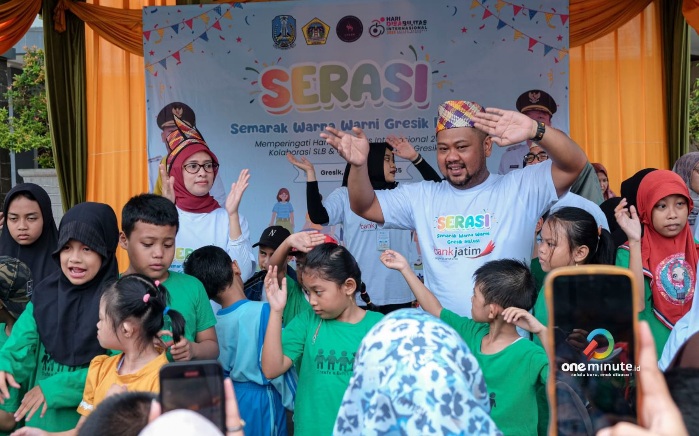 GRESIK,1minute.id – Ratusan anak disabilitas riang. Mereka bahagia mengikuti kegiatan Serasi : Semarak Warna-Warni Gresik Inklusi. Kegiatan untuk memperingati Hari Disabilitas Internasional 2025 dihelat di halaman Kantor Bupati Gresik pada Selasa, 9 Desember 2025.