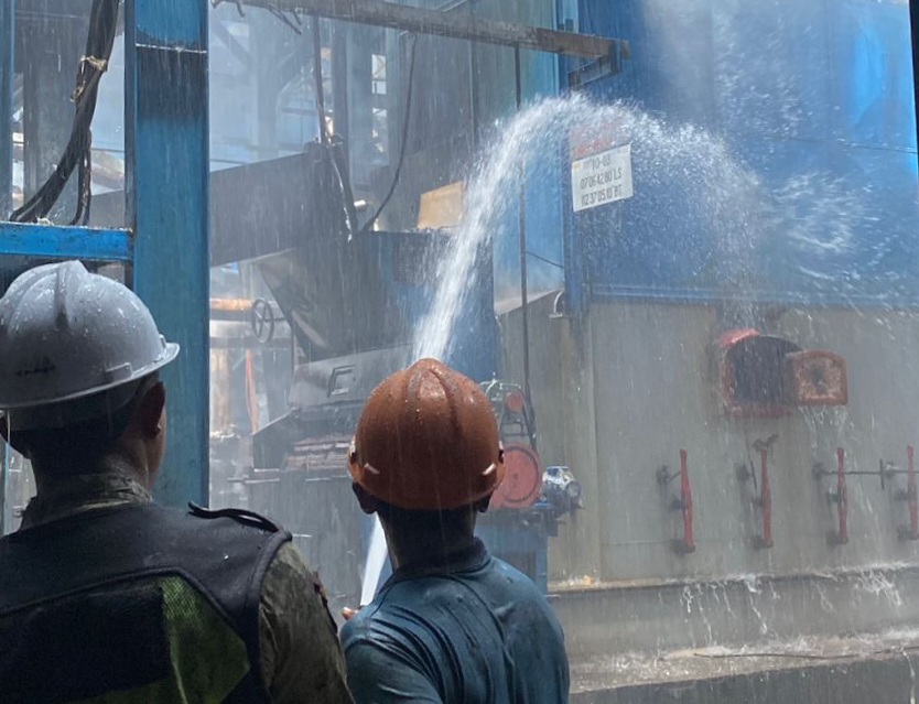 langsung bergerak ke lokasi satu menit kemudian dan tiba di tempat kejadian sekitar pukul 10.50 WIB. Menurut Perwira Piket Damkar Gresik Nurul Haqqi mengatakan berdasarkan keterangan saksi Andryan, yang juga merupakan pihak HRD, kebakaran bermula dari jalur strainer yang mengalami kebocoran.