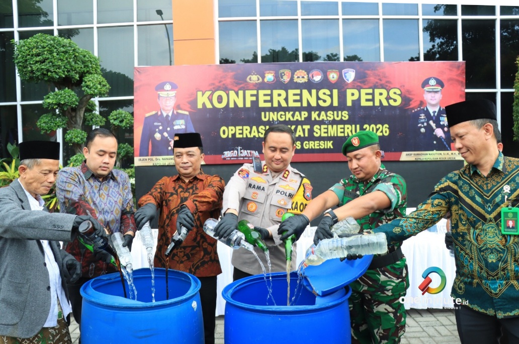 Diakhir kegiatan dilakukan pemusnahan ratusan botol miras hasil operasi pekat semeru 2026. Polres Gresik menegaskan akan terus melakukan penindakan terhadap segala bentuk penyakit masyarakat guna menjaga ketertiban wilayah, terutama selama bulan Ramadan.