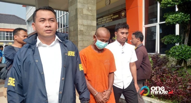 GRESIK,1minute.id – Lelaki bertubuh kerempeng berinisial A.R, 44 tahun itu terus merunduk ketika digiring ke rumah tahanan (rutan) Polres Gresik pada Senin, 6 April 2026.