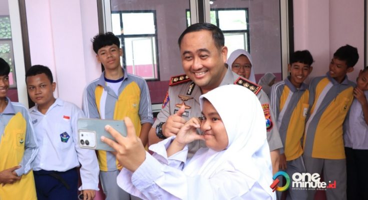 GRESIK,1minute.id – Kapolres Gresik AKBP Ramadhan Nasution mengunjungi SLB Kemala Bhayangkari 2 Gresik pada Kamis, 9 April 2026. Kunjungan tersebut menjadi momen berkesan yang tak hanya menghadirkan keceriaan, tetapi juga menumbuhkan semangat baru bagi anak-anak istimewa dalam menempuh pendidikan.