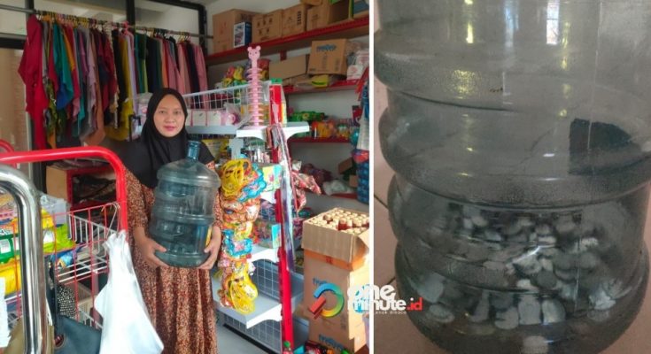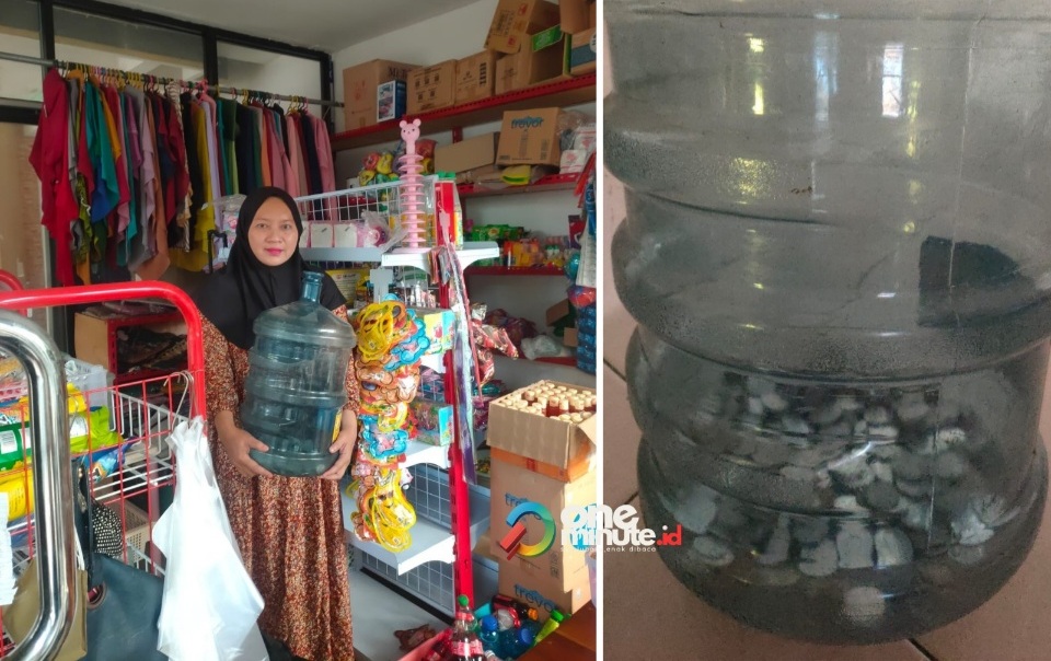 Uswatun menaruh uang recehan itu ke dalam galon air mineral tujuan mudah untuk di tukar dengan uang kertas. “Kadang saya tukar untuk uang kembalian orang yang beli jajan,” katanya. Uang tabungan itu, kemudian digunakan untuk mendaftar haji hingga lunas. Bahkan masih ada sisa lebih. “Ini uang sisanya,” katanya sambil menunjukkan uang logam di dalam galon air mineral. “Mohon doanya ya. Semoga lancar,” ujarnya.