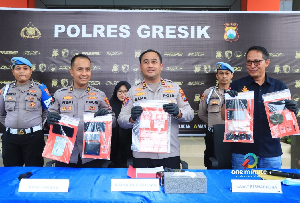 GRESIK,1minute.id – Satuan Reserse Narkoba (Satresnarkoba) Polres Gresik memberangus sindikat peredaran narkoba antarkota dalam provinsi (AKDP). Sebanyak empat pengedar diringkus. Barang bukti yang disita sebanyak 68,211 gram Sabu-sabu (SS).