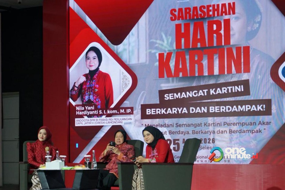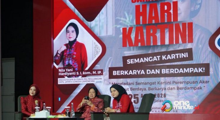 GRESIK,1minute.id – Nila Yani Hardiyanti, Kartini masa kini tampil di hadapan ratusan peserta “Sarasehan Hari Kartini” di Gedung Nasional Indonesia (GNI) di Jalan Pahlawan, Gresik pada Sabtu, 25 April 2026. Anggota Komisi VII DPR RI ini tampil bersama Tri Rismaharini, Menteri Sosial Republik Indonesia periode 23 Desember 2020 hingga September 2024.